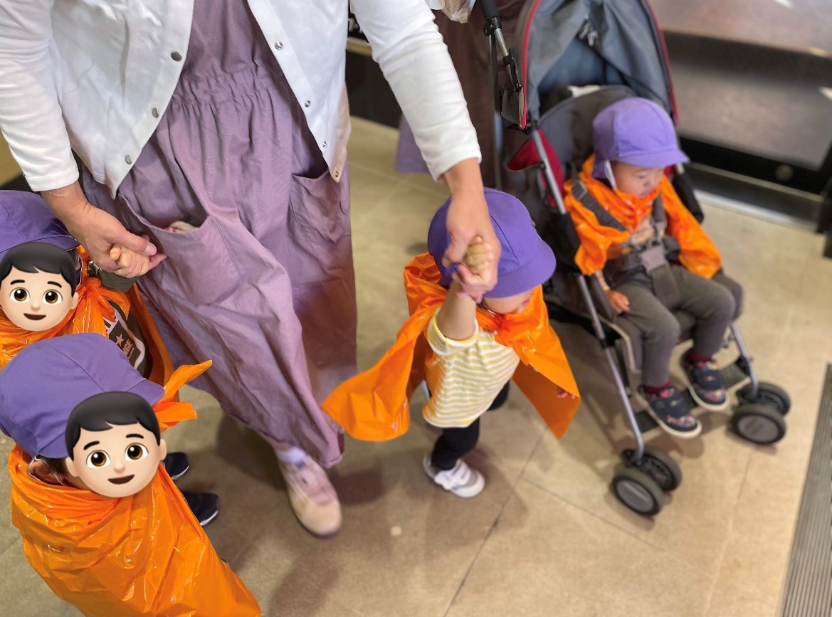 パネルシアターのあとは、オレンジ色のマントをまとって出発!